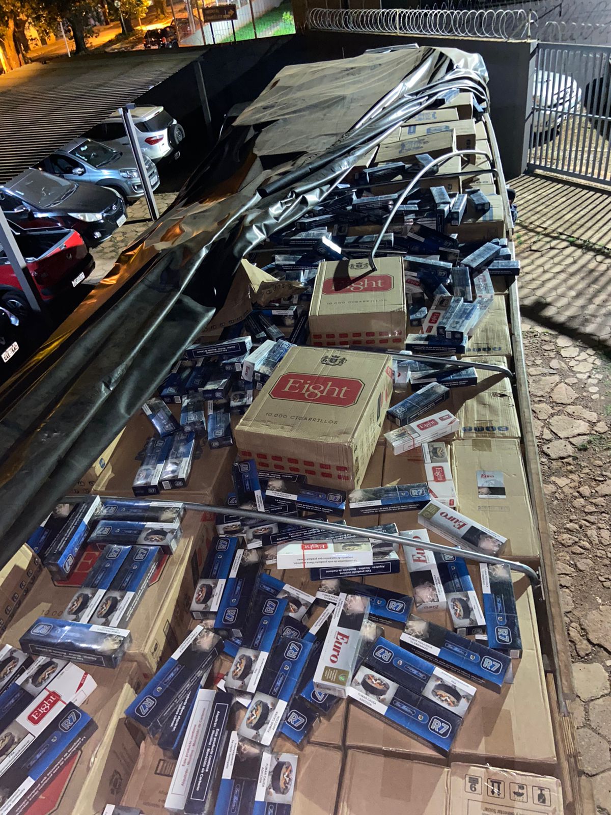 A Operação Hórus apreendeu ontem (14), entorpecentes e aproximadamente 880 caixas de cigarro de Euro, R7 e EIGHT. Os policiais teriam recebido uma denúncia anônima, que indicou às equipes o local onde estavam sendo descarregados os produtos ilícitos em um galpão em Campo Grande. Segundo as autoridades, foram abordados junto com o condutor da carreta, outras três pessoas de 26, 28 e 49 anos.
