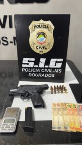 A Polícia Civil de Mato Grosso do Sul, por meio do Setor de Investigações Gerais (SIG) de Dourados, desarticulou um entreposto de drogas na tarde desta quinta-feira (24), no bairro Jardim Esplanada. A operação resultou na apreensão de mais de 70 quilos de entorpecentes, além de uma arma de fogo, e na prisão de dois homens em flagrante.