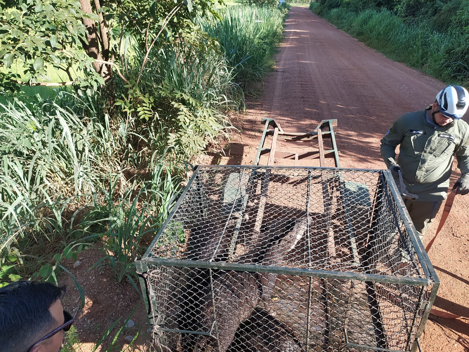 Foi então organizada uma força-tarefa para conter e capturar os animais. Após isolar os queixadas em uma área específica do terreno, foi possível retirar os moradores em segurança. Em seguida, utilizando gaiolas e com a ajuda de um trator, a equipe iniciou a captura dos animais.