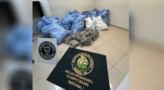 A Polícia Federal apreendeu mais de 200 quilos de drogas durante ações realizadas na última sexta-feira (24) e na segunda-feira (27) no município de Corumbá, a 427 quilômetros de Campo Grande. De acordo com a corporação, as apreensões ocorreram em duas situações distintas. Em uma delas, os policiais localizaram um veículo que transportava 186 quilos de maconha e 27 quilos de cocaína. Também foram encontrados materiais utilizados para o armazenamento e pesagem dos entorpecentes. Todo o material foi encaminhado à
